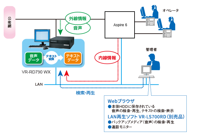 | 通話モニター | 本体操作、LAN再生ソフトVR-LS700RD | |